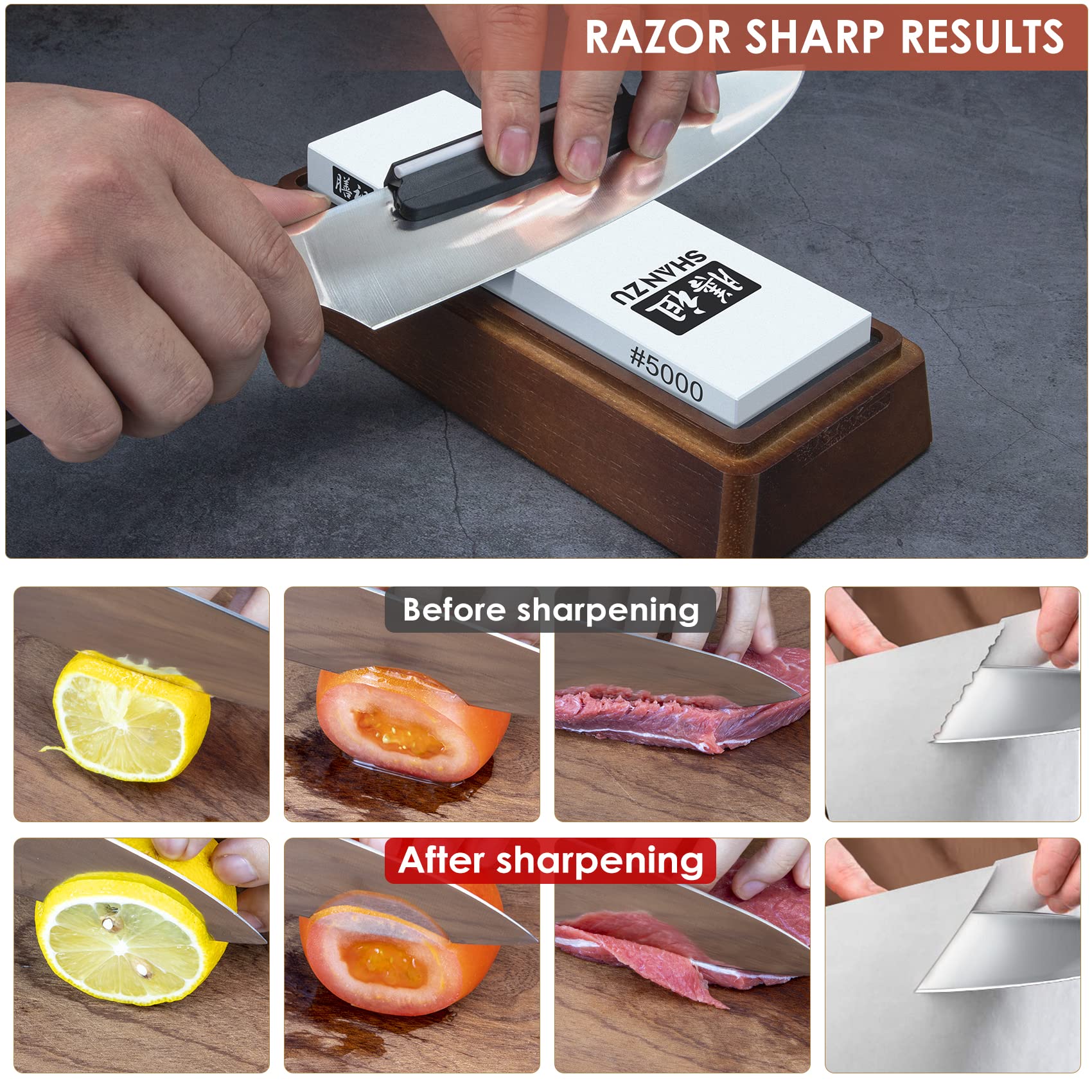 - Choose your sharpening angle according to the different knives: 17 degrees for razor, sushi, chef and kitchen knives; 20 degrees for pocket, fruit and boning knives; 25 degrees fro country knives; 30 degrees for bayonet or country knives; 40 degrees for survival knives.