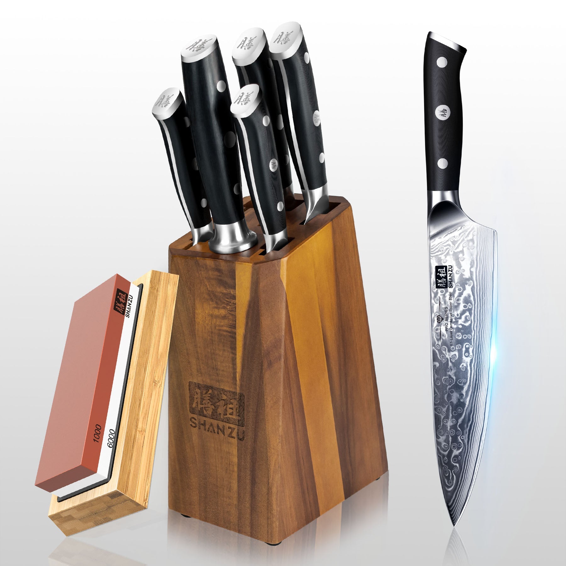 PRO 8-PCS Damascus Kitchen Knife Set With Block