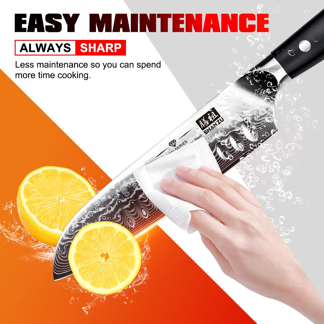 The PRO Damascus Santoku Knife is a versatile and highly sought-after tool for modern home kitchens. With its unique Damascus steel construction, this knife offers exceptional precision and durability for all your cutting needs, from meats and fish to vegetables. Elevate your cooking experience with this must-have kitchen essential.