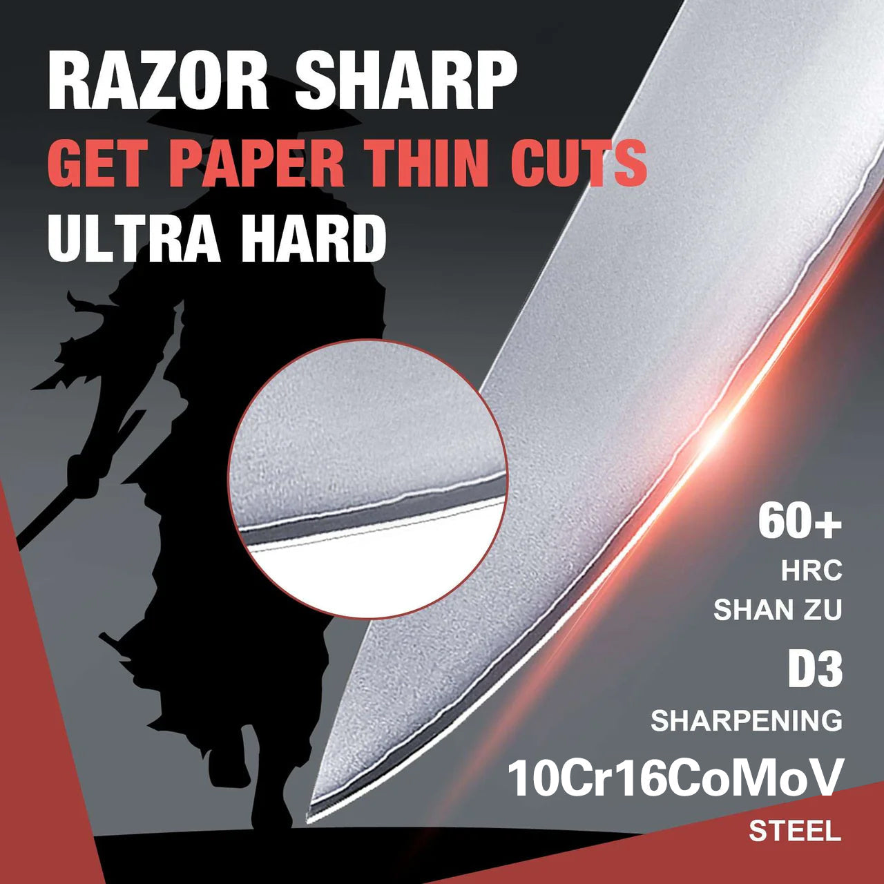 Blade: The blade is made of high-quality 10Cr15CoMoV steel, guaranteeing durability, sharpness and edge retention. With a hardness of 60 ± 2 HRC, this knife is razor-sharp, guaranteeing precise, effortless cutting.