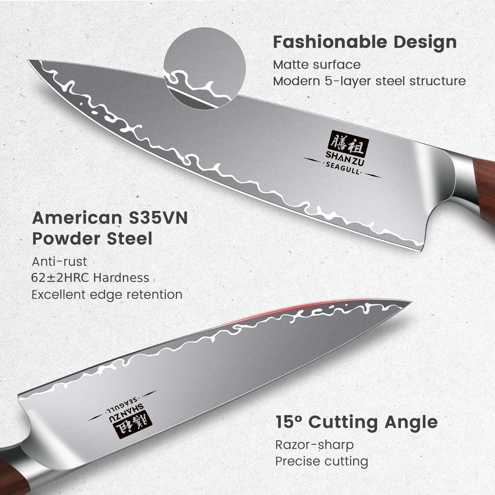 Super-Sharp Blade: Made from S35VN powder steel core with a 15° V-shaped cutting angle for effortless slicing, dicing, and chopping.